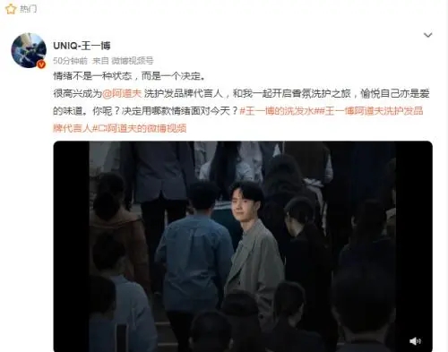 618前夕官宣新生代藝人王一博(明星代言公司)為阿道夫洗護(hù)發(fā)品牌代言人,在官方微博上聯(lián)袂發(fā)布TVC大片,傳遞“情緒不是一種狀態(tài),而是一個(gè)決定”的價(jià)值主張,愉悅自己亦是愛的味道,提出“你決定,用哪款情緒面對今天”的靈魂叩問,迅速抓取粉絲和消費(fèi)者眼球。同時(shí),派送大波福利,實(shí)力寵粉,迎來品牌發(fā)展的高光時(shí)刻。