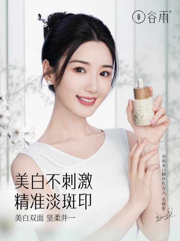 近日,谷雨官宣演員毛曉彤(明星代言公司)成為美白精華代言人,共同詮釋美白雙面,堅(jiān)柔并一的產(chǎn)品新主張。