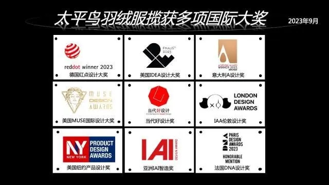 太平鳥羽絨服以出色設(shè)計,攬獲多項國際設(shè)計大獎。【大獎資料圖】