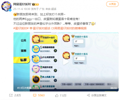 事實(shí)上,早在合作消息正式官宣的前一天,《蛋仔派對(duì)》就發(fā)布了一支充滿懸念的預(yù)熱視頻。雖然視頻只有10秒,且名為“四是四十是石”的神秘朋友只講了兩句俏皮的“Eggy”,但如此帶有暗示意味的ID和充滿磁性的聲線,還是讓不少忠實(shí)粉絲和玩家猜到了他的身份!