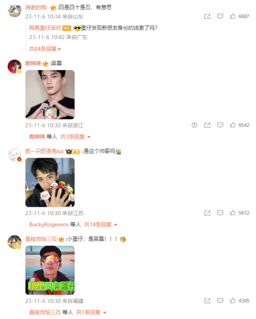 沒(méi)錯(cuò),這位“四是四十是石”的真實(shí)身份,正是《蛋仔派對(duì)》的品牌代言人吳磊!也正因?yàn)槿绱?,粉絲和玩家齊聚《蛋仔派對(duì)》官博評(píng)論區(qū),紛紛留下他們珍藏的吳磊表情包,作為對(duì)預(yù)熱視頻的回應(yīng),同時(shí)也對(duì)最終答案的揭曉表示了期待。從這些熱情洋溢的文字和回復(fù)也不難看出,大家都希望見(jiàn)證吳磊和《蛋仔派對(duì)》的攜手,能夠夢(mèng)想成真。