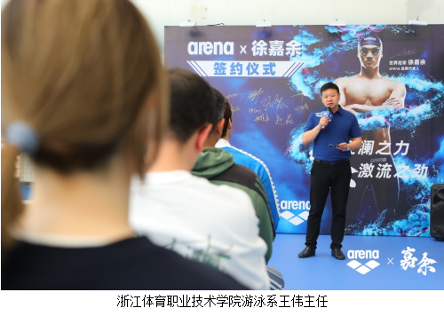 從泳壇新人到世界冠軍,arena阿瑞娜堅持助力游泳運動員不斷挑戰(zhàn)更快速度,更高成績,與浙江游泳隊的多年合作,見證了游泳健兒的競賽高光時刻,也陪伴他們度過了艱辛的訓(xùn)練生活。浙江體育職業(yè)技術(shù)學(xué)院游泳系王偉主任也出席了活動,培養(yǎng)出眾多優(yōu)秀游泳運動員的他稱:“在arena阿瑞娜的贊助支持下,我們浙江游泳隊運動員取得了很多杰出的成績,眾多隊員在世錦賽、亞運會、奧運會等國際賽事上取得了輝煌戰(zhàn)績。我們浙江隊對arena阿瑞娜游泳裝備的專業(yè)度是非常信賴的。正是因為有了質(zhì)量、性能、品質(zhì)都頂尖的游泳裝備,運動員才能放心大膽的去拼去闖,在每一次訓(xùn)練和比賽中都省去后顧之憂。此次徐嘉余作為arena品牌代言人,是對我們之間的合作一次有力的見證,也是強強聯(lián)手、拼搏未來的新起點。”