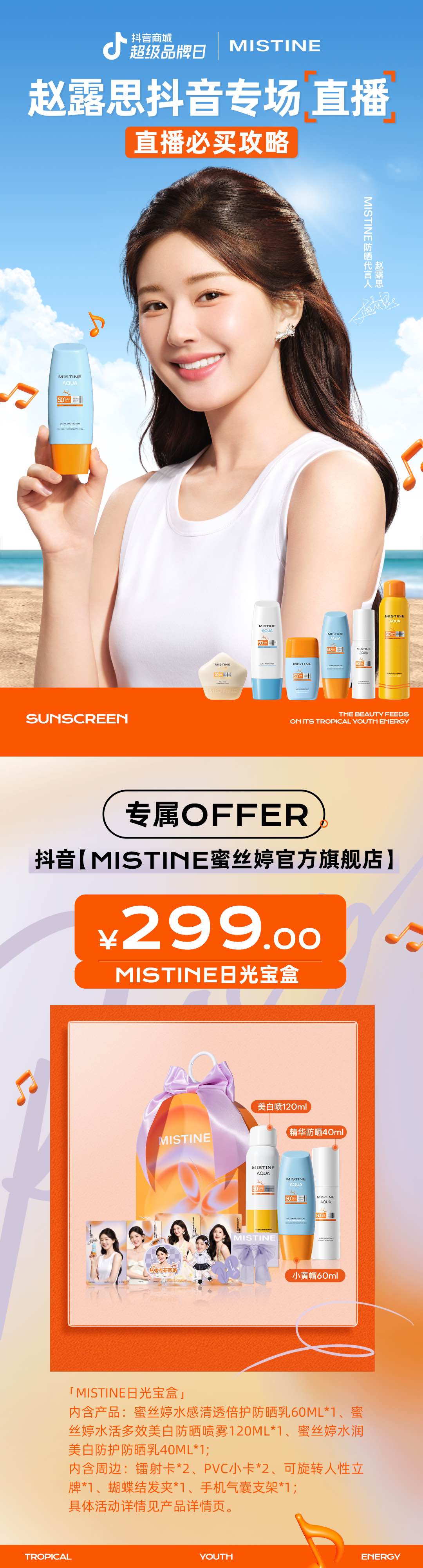 此外趙露思于 3 月 17 日晚做客 MISTINE 蜜絲婷抖音官方直播間帶來(lái)品牌首場(chǎng)直播,向粉絲們推薦防曬好物。品牌也適時(shí)推出露思同款「MISTINE 日光禮盒」,內(nèi)含明星防曬產(chǎn)品以及代言人專(zhuān)屬周邊,到手即可感受品牌的滿(mǎn)滿(mǎn)誠(chéng)意。