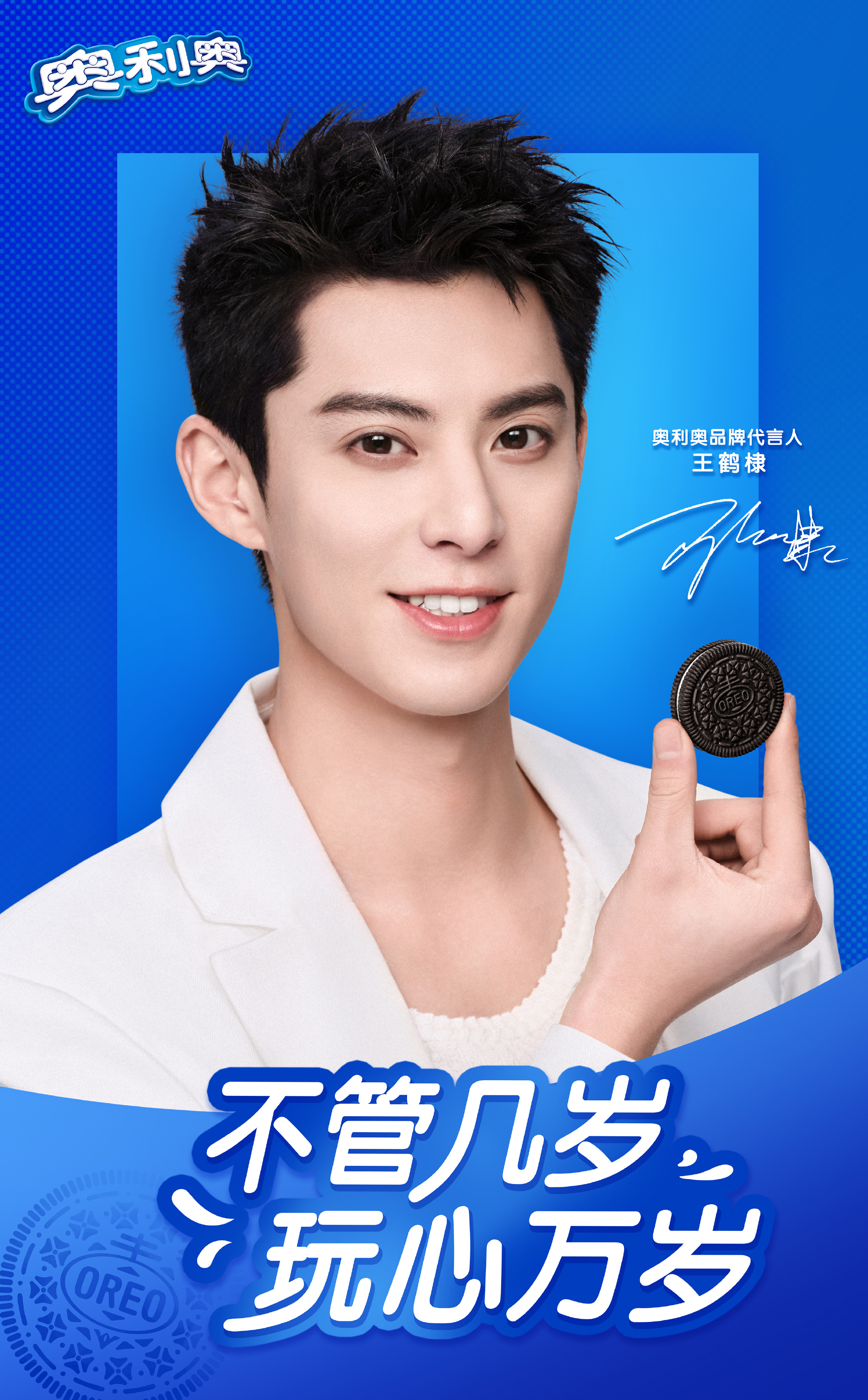3 月 31 日,奧利奧官宣王鶴棣(明星代言公司)為品牌代言人,官宣 pv 以黑白奧利奧拼貼的形式再現(xiàn)了代言人玩心無限的頭號(hào)玩家身份,呼應(yīng)品牌「不管幾歲,玩心萬歲」的品牌理念,此后二者將繼續(xù)攜手和大家一起率真做自己。