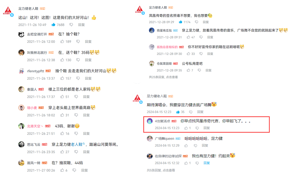 此次與鳳凰傳奇的合作,為何能擦出如此奇妙的火花?事實(shí)上,在社交APP平臺(tái)中,不乏早期“難道沒(méi)覺(jué)得足力健與鳳凰傳奇不謀而合”的期待,也有近期“早點(diǎn)找鳳凰傳奇代言足力健早起飛了”的調(diào)侃。網(wǎng)友的玩梗讓人會(huì)心一笑,但新的攜手可以再創(chuàng)高光。