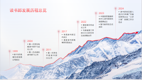 讀書郎自成立以來,已經走過了25年的發(fā)展歷程。這一路上,讀書郎始終專注于教育科技領域,堅持用科技賦能教育,讓學習成為一種美好體驗。通過不斷的技術創(chuàng)新和教學內容研發(fā),讀書郎不僅引領著教育科技行業(yè)的發(fā)展,更贏得了千萬家庭的信賴和支持。讀書郎產品線涵蓋了學習機、詞典筆、電話手表、智慧學習桌椅等C端產品,以及智慧校園、AI智習室等to B業(yè)務,構建了一個全方位的智慧教育生態(tài)系統(tǒng)。