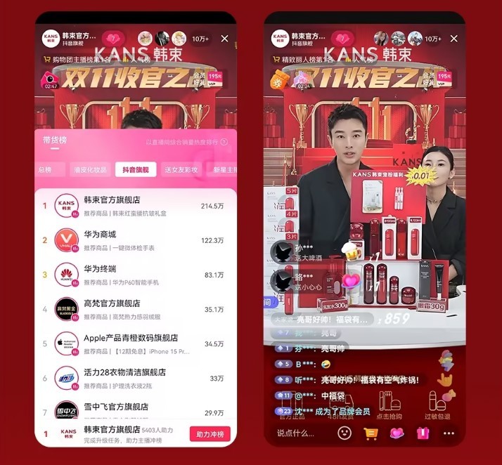 同樣在雙11期間,賈乃亮直播間韓束單品牌銷售額破4613萬元,刷新品牌專場銷售額記錄,霸榜抖音5榜TOP1,通過對高品質產品的深度分享,助力國貨品牌的影響力與口碑力。