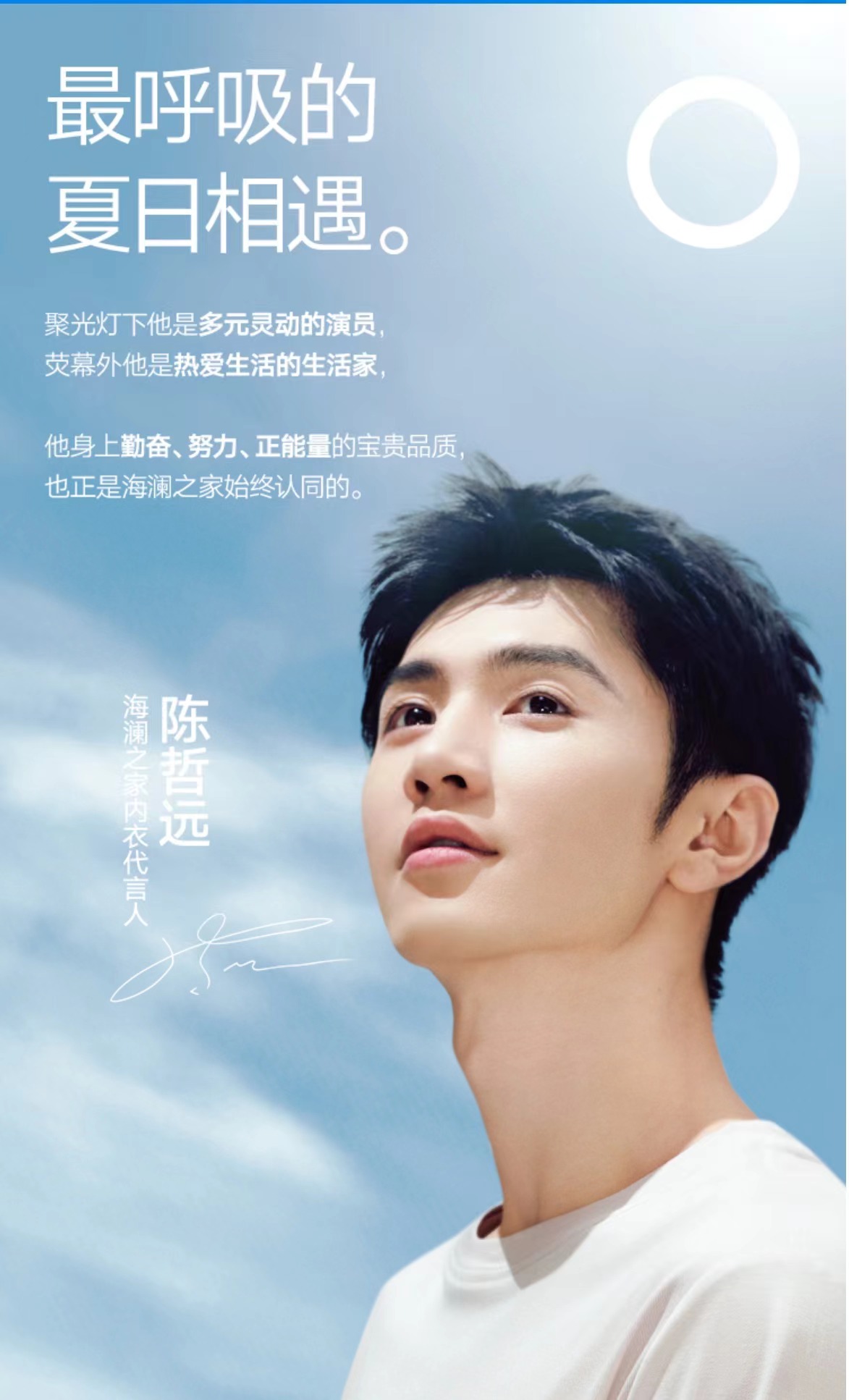 5 月 18 日,陳哲遠聯(lián)合海瀾之家共創(chuàng) TVC ,短片中陳哲遠身穿最呼吸系列內(nèi)衣,在內(nèi)衣帶來的輕松與舒適下,安然自若穿梭于不同場景。海瀾之家希望與陳哲遠一起倡導一種最本真的生活方式,努力打造出更符合現(xiàn)代消費者需求的產(chǎn)品。