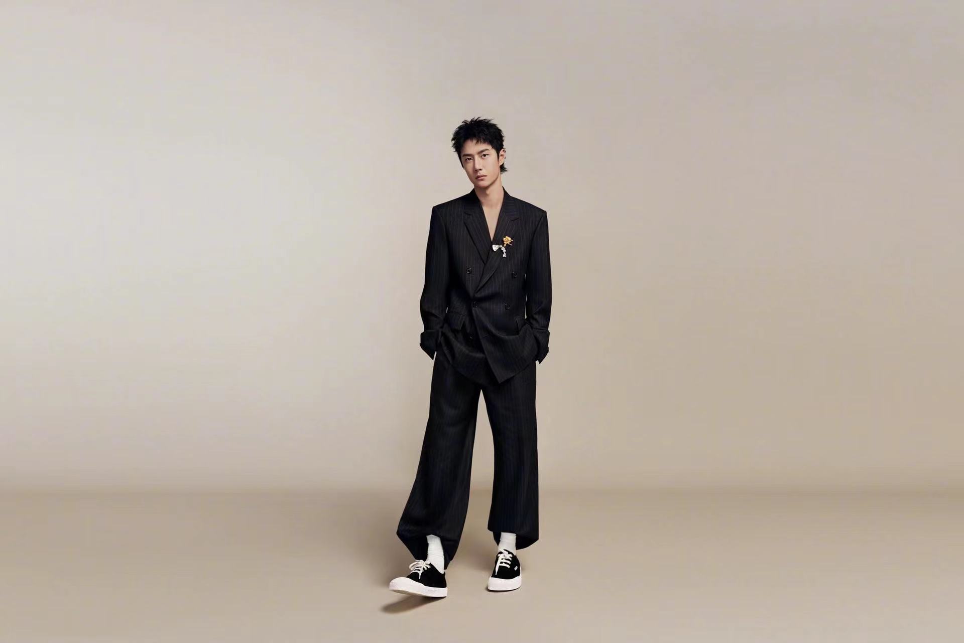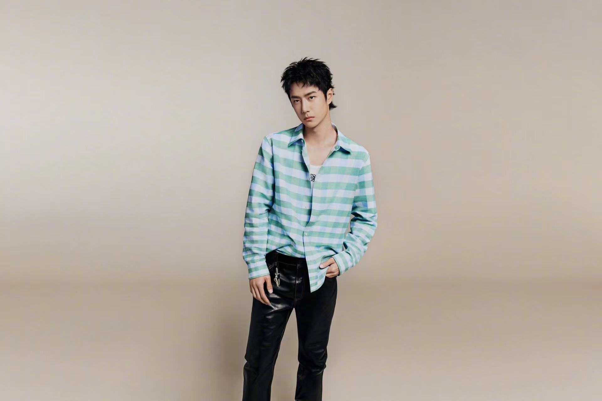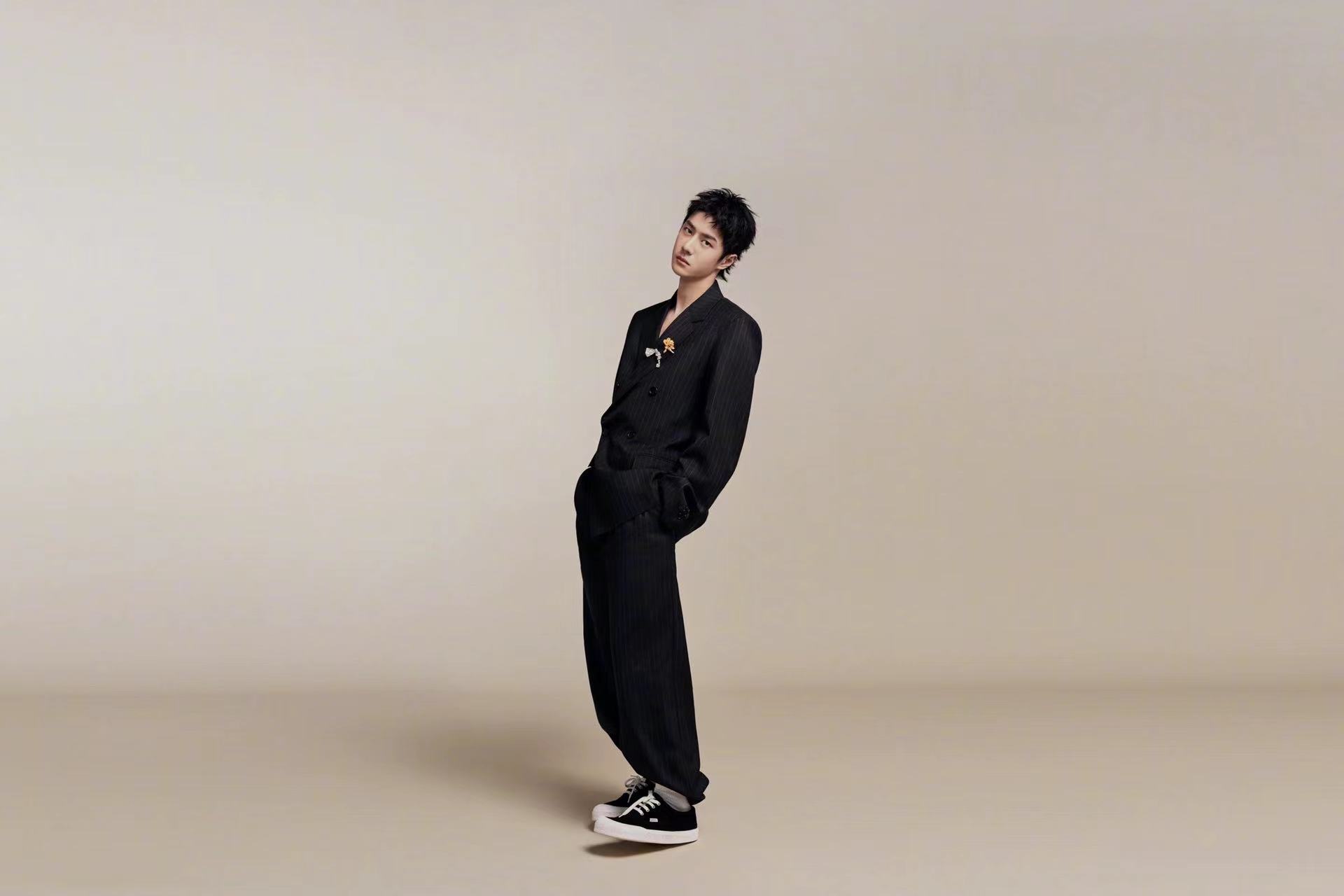 在 2025 春夏男裝秀開幕前夕,LOEWE 官宣王一博(明星代言公司)為全球品牌代言人。在官宣大片中,王一博置身于米色背景前,身穿條紋西裝及格紋襯衫,盡顯輕松、自在型格。