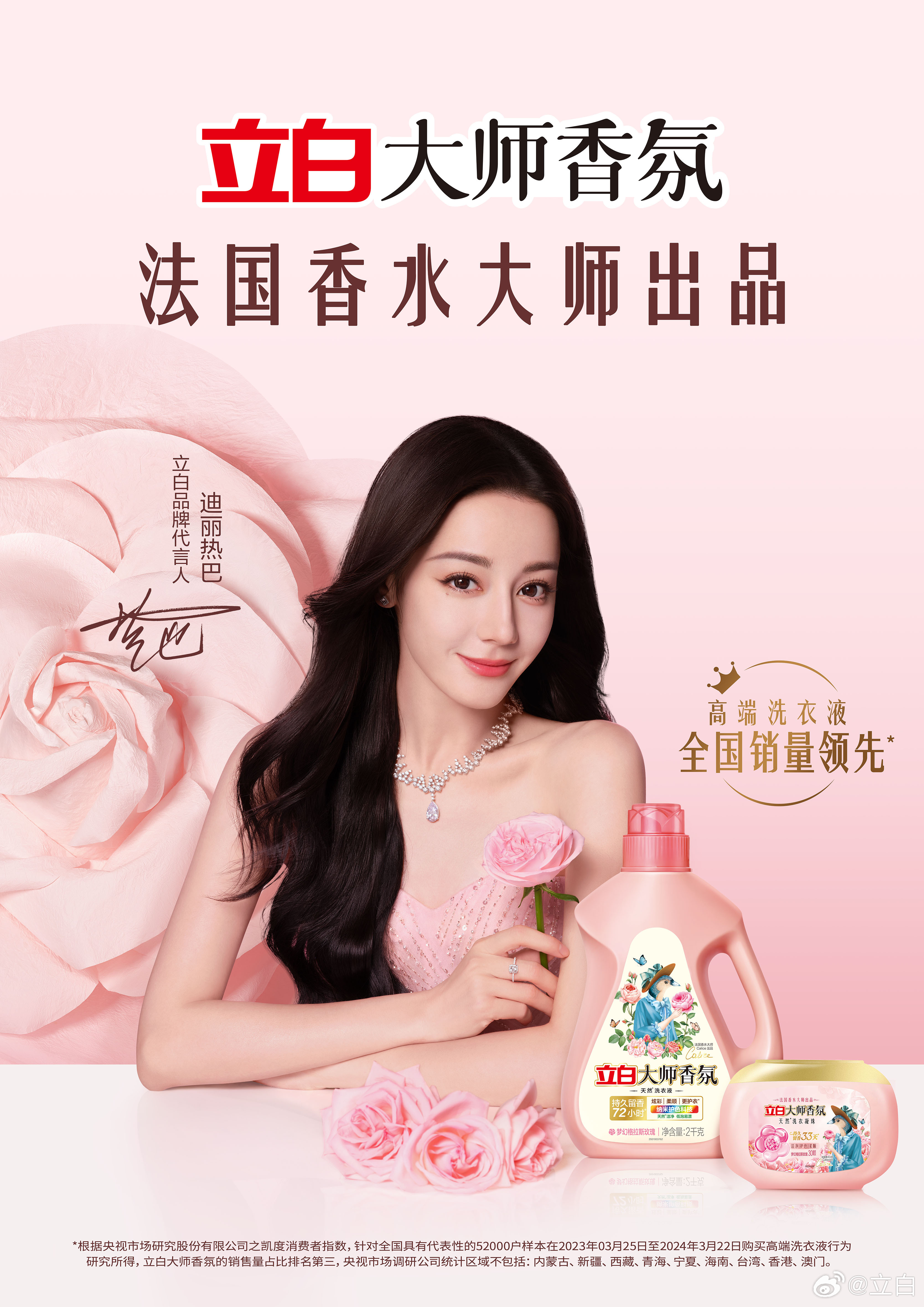 8 月 12 日,立白正式官宣迪麗熱巴(明星代言公司)為品牌代言人,同步推廣立白大師香氛系列產(chǎn)品,邀請(qǐng)消費(fèi)者一起「穿上我愛的香」。據(jù)悉,此次的香氛系列源自法國(guó)格拉斯的玫瑰香氣,讓消費(fèi)者在清潔衣物的同時(shí),感受香與時(shí)尚的無限感官之美。同時(shí),立白將一起攜手代言人探索更多時(shí)尚穿香秘訣,讓香與時(shí)尚,隨衣綻放。