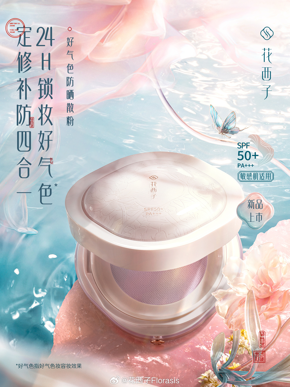 此番合作,宋佳首先為大家介紹了花西子新品好氣色防曬粉餅,定妝 + 修色 + 補妝 + 防曬一餅四用。未來,雙方將攜手探尋東方花養(yǎng)科技,共揚東方氣色美學,一同開啟「花養(yǎng)好氣色 雅韻東方美」的新篇章。