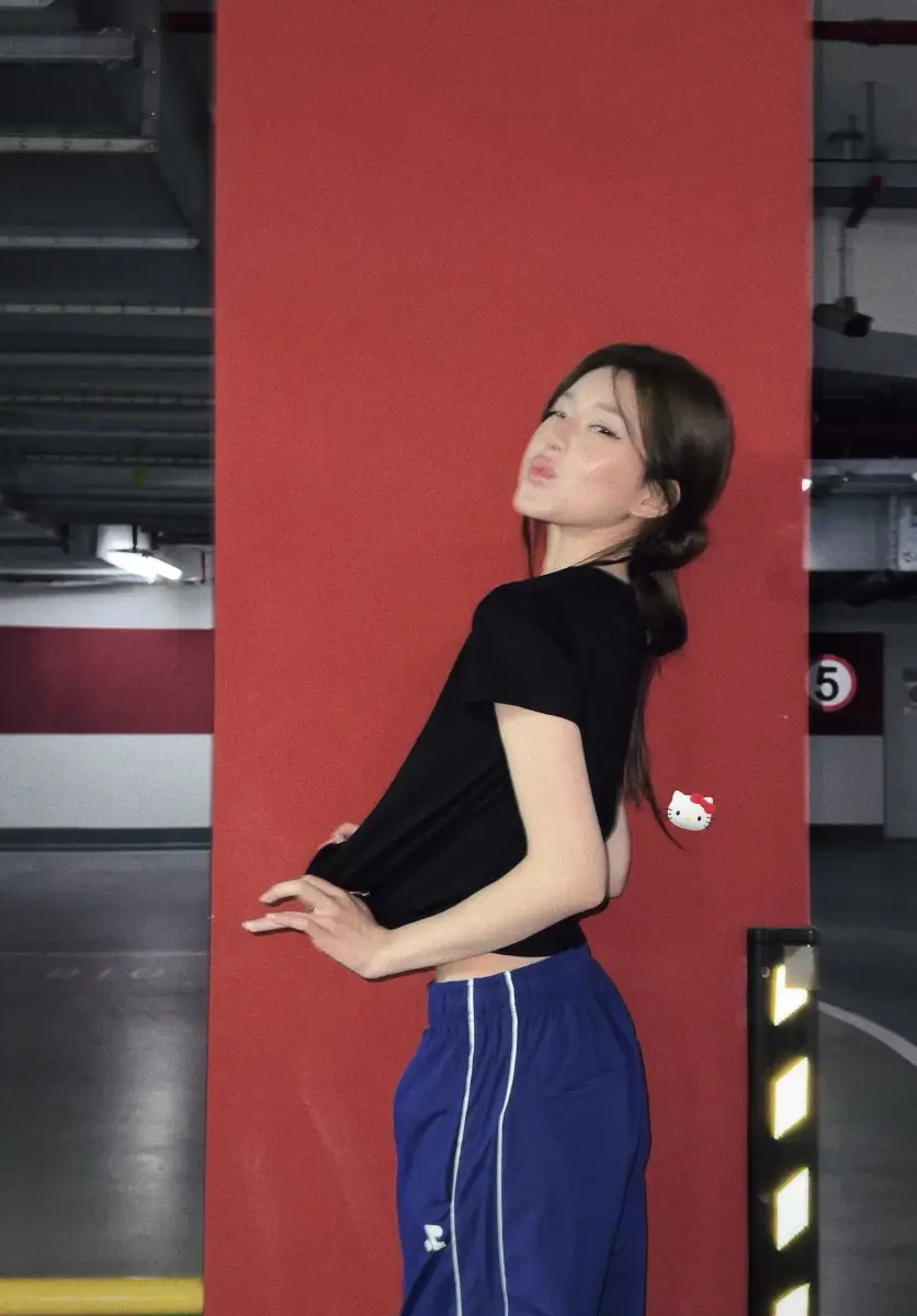 趙露思嘟嘴擺pose,腰肢纖細,身材曲線曼妙。