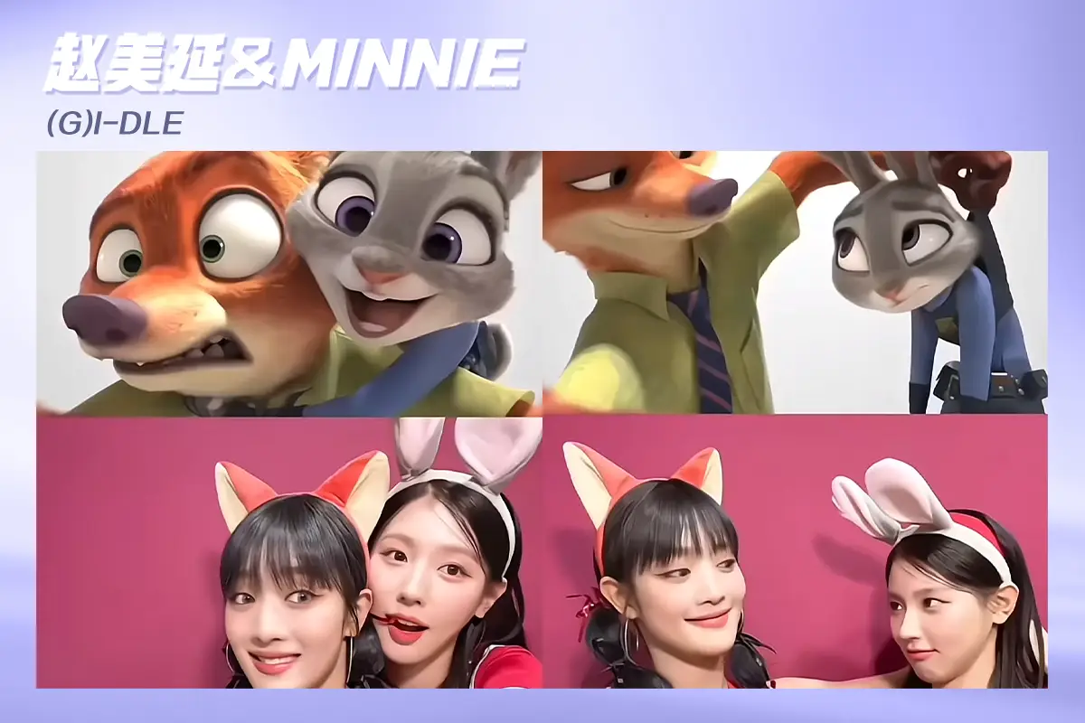 除了內(nèi)娛外,韓娛也有很多愛豆cos了朱迪尼克。比如aespa的WINTER&GISELLE,女孩子同框真的好甜呀!