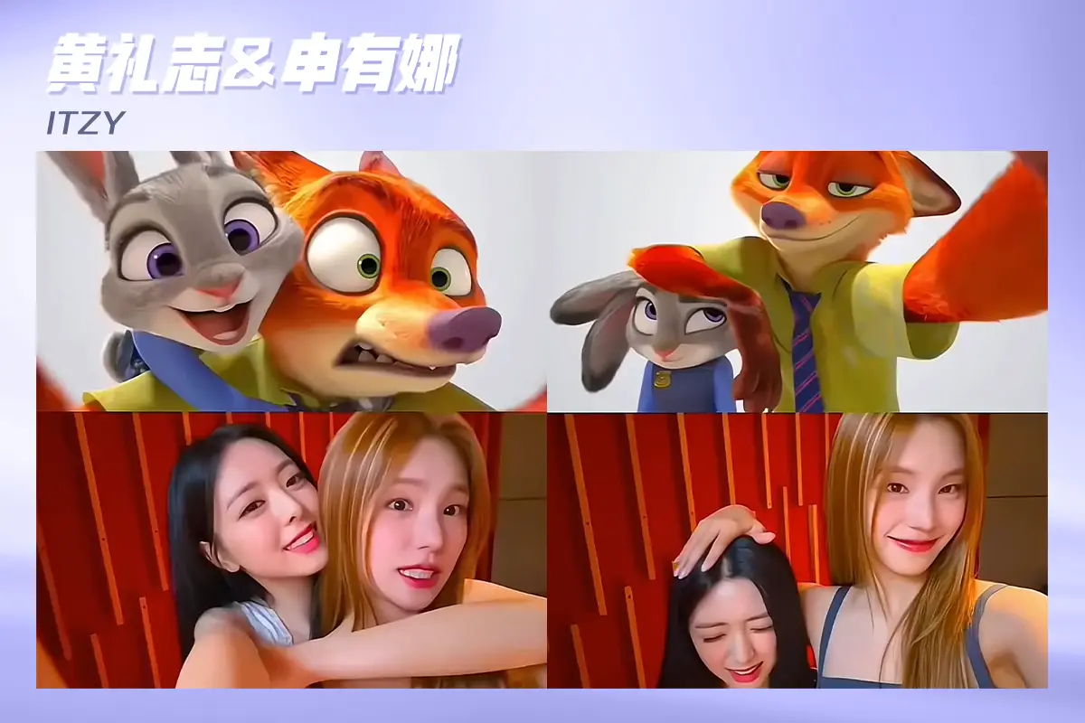 ITZY黃禮志&申有娜兩個人的長相就非常符合狐貍和兔子,美女貼貼看得人心情都變好了。