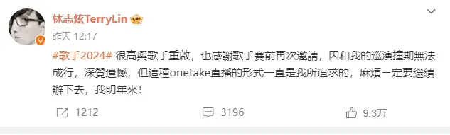 鄧紫棋林志炫回應(yīng)《歌手》搖人 稱演唱會(huì)行程有沖突
