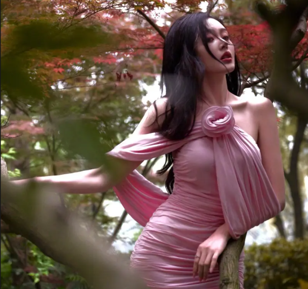 4月17日,張?zhí)鞇?ài)發(fā)布最新寫(xiě)真,照片里她穿粉色抹胸裙在河邊戲水,身材凹凸有致,性感嫵媚。