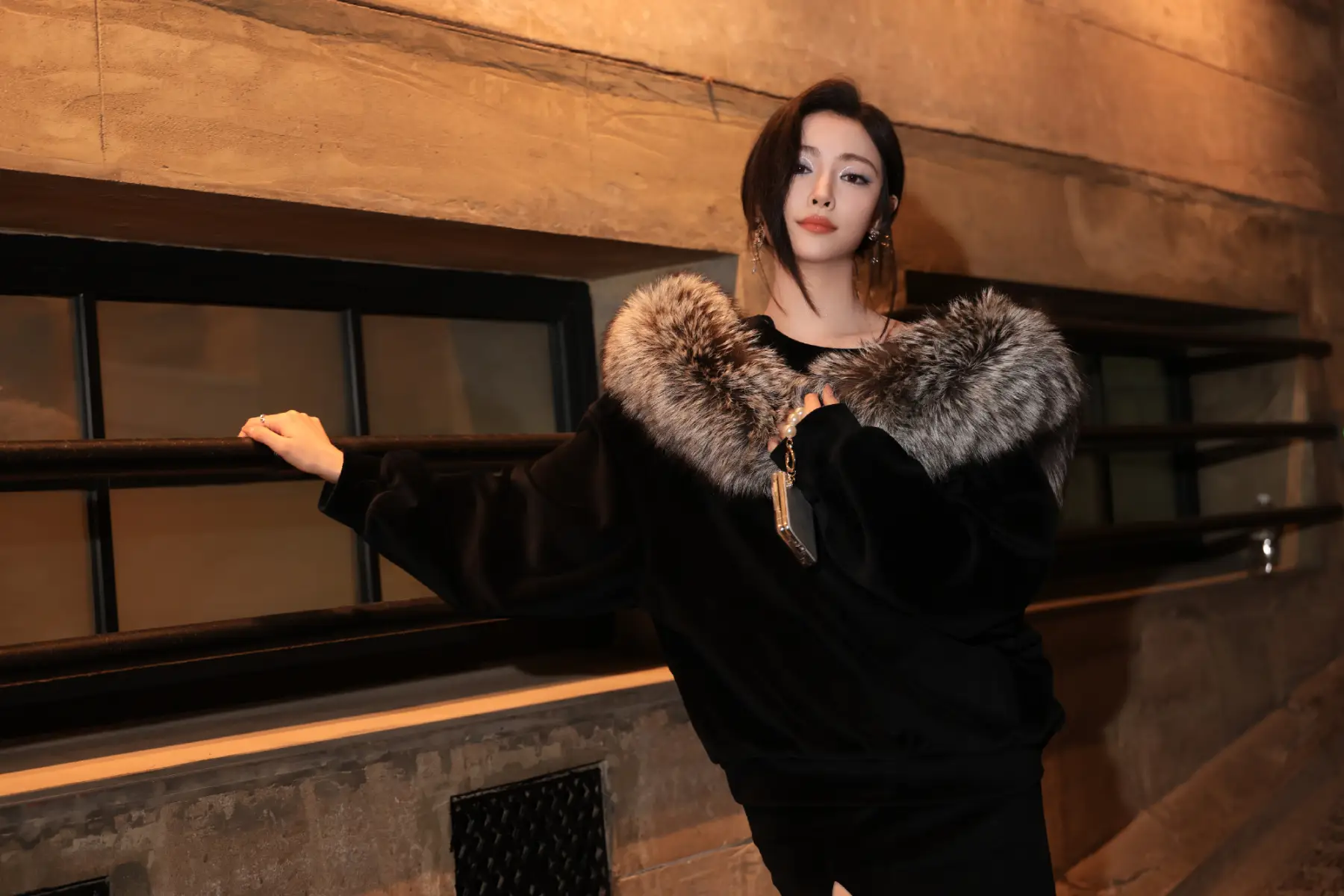 許佳琪身穿皮草氣質(zhì)優(yōu)越 畫(huà)藍(lán)色眼影魅惑迷人