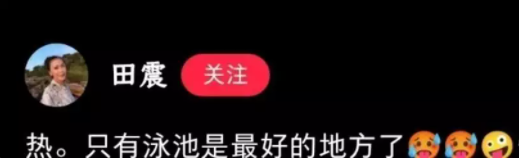 田震配文寫道:“熱,只有泳池是最好的地方了”,看來是墨爾本氣溫又升高了,田震只得選擇游泳來避暑。