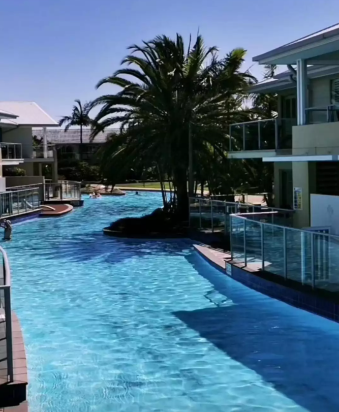 隨后,田震曬出了所住豪宅的景色,只見豪宅前是一大片泳池,水池泛藍,格外好看。這時的天空還是藍色的,想必田震身處其中一定非常享受。