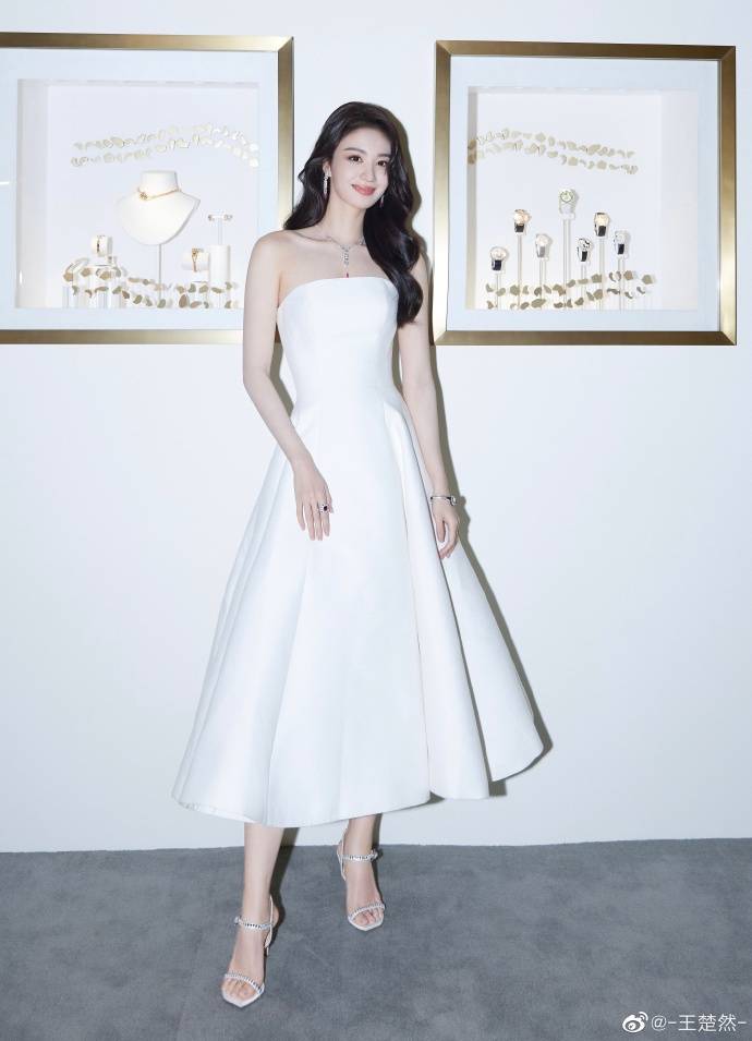 王楚然身穿白色抹胸連衣裙,她俏臉清麗脫俗,側身露出白皙香肩,曼妙的身材曲線,讓人一看就移不開眼!