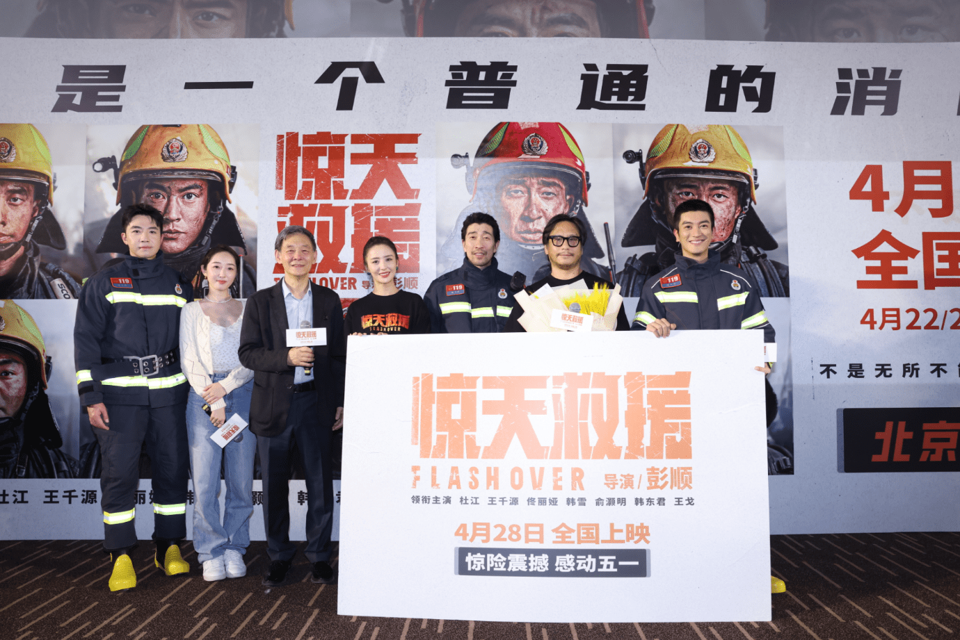 4月22日,電影《驚天救援》在北京首映,導(dǎo)演彭順,主演王千源(明星經(jīng)紀(jì)公司)、杜江(明星代言費(fèi))、佟麗婭(明星出場費(fèi))、俞灝明出席映后見面會(huì)和觀眾交流。