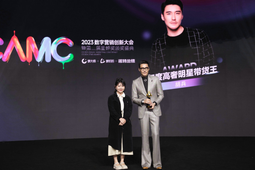 明星經(jīng)紀(jì)公司資訊!近日,胡兵(胡兵經(jīng)紀(jì)公司)在2023蟬媽媽數(shù)字營銷創(chuàng)新大會榮獲“年度高奢明星帶貨王”獎項,頒獎時,胡兵身著灰色西裝,搭配黑框眼鏡,以一貫精致的紳士形象出席大會。