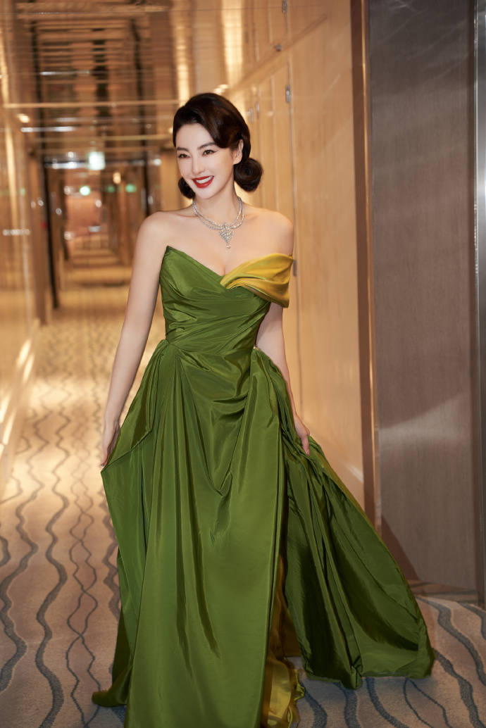 張雨綺身穿綠色抹胸裙,她俏臉成熟嫵媚,明眸善睞,唇紅齒白,烏黑的秀發(fā)梳在腦后,露出白皙的香肩和傲人的事業(yè)線,這位女星喜笑顏開,魔鬼身材盡顯無遺,絕對性感火辣!