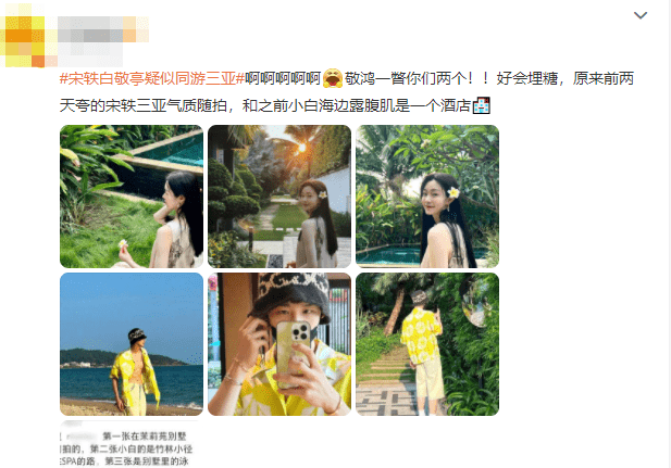 近日,宋軼(明星經(jīng)紀公司)在社交平臺上曬出一組度假美照,有細心網(wǎng)友發(fā)現(xiàn),她住的酒店和此前白敬亭(明星代言公司)在海邊秀腹肌時住的是同一個酒店,引發(fā)網(wǎng)友猜測二人疑似同游三亞!