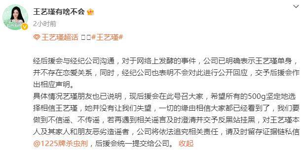王藝瑾后援會發(fā)文:
