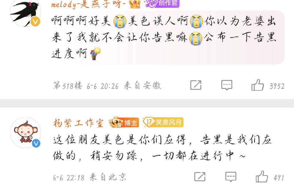 楊紫方回應(yīng)粉絲訴求 稱告黑是我們應(yīng)該做的