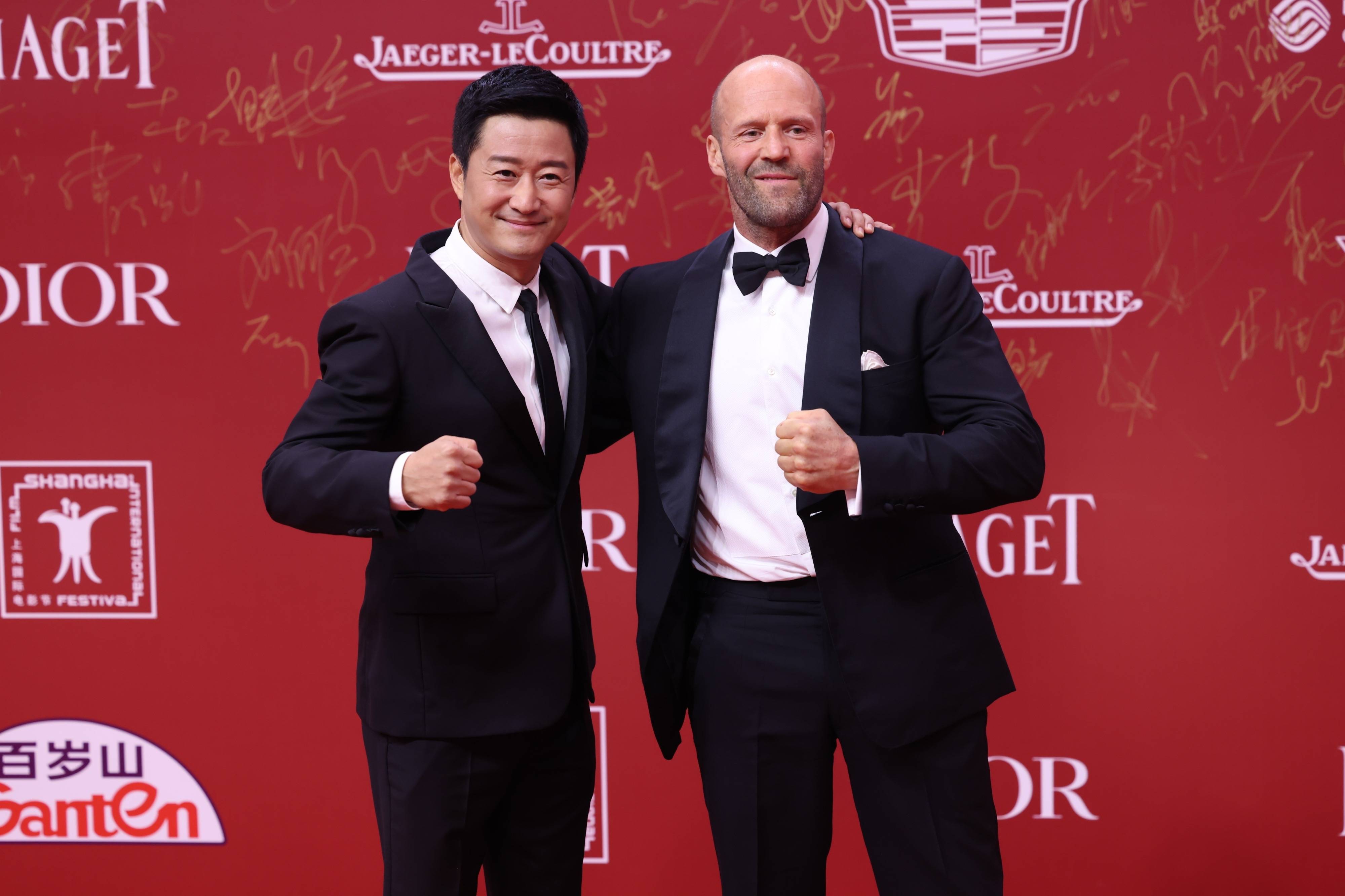 6月9日,第25屆上海國際電影節(jié)開幕,吳京(明星經(jīng)紀(jì)公司)、杰森·斯坦森等攜新片《巨齒鯊2》亮相紅毯。