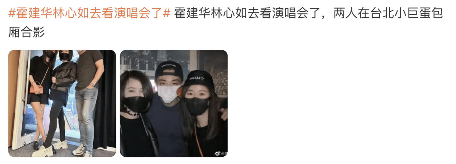 6月11日,網(wǎng)上曝光了霍建華(明星經(jīng)紀(jì)公司)和林心如的恩愛合影,兩人在6月10日一起到臺北小巨蛋看張清芳的演唱會,二人頻繁合體,用行動(dòng)再次打臉婚變謠傳。