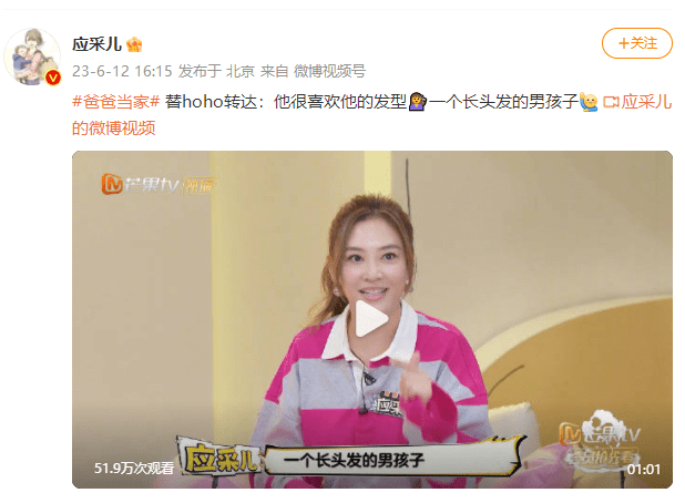 應(yīng)采兒回應(yīng)把小兒子當(dāng)成女孩養(yǎng):會(huì)讓他繼續(xù)留長(zhǎng)發(fā)