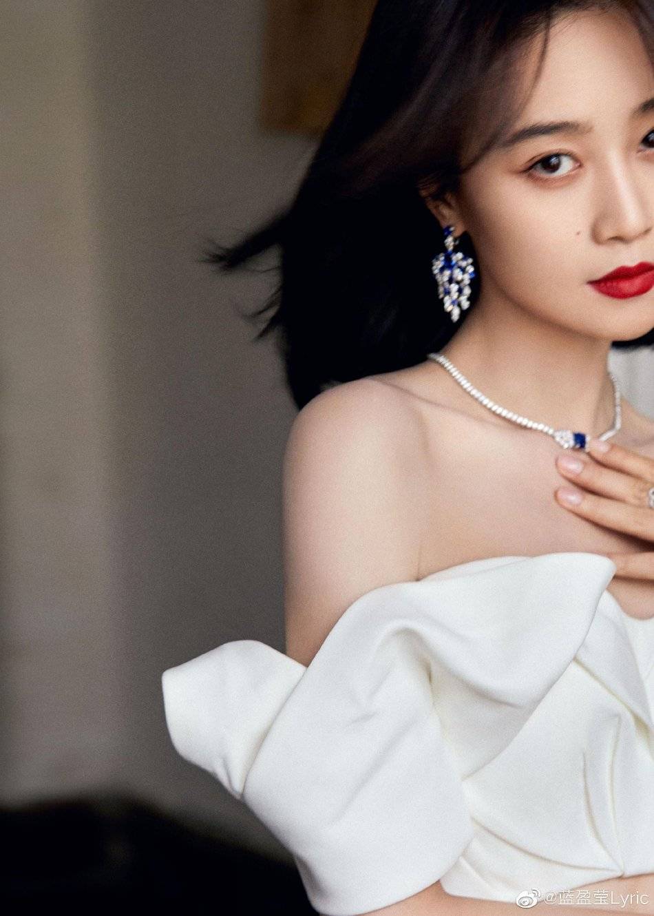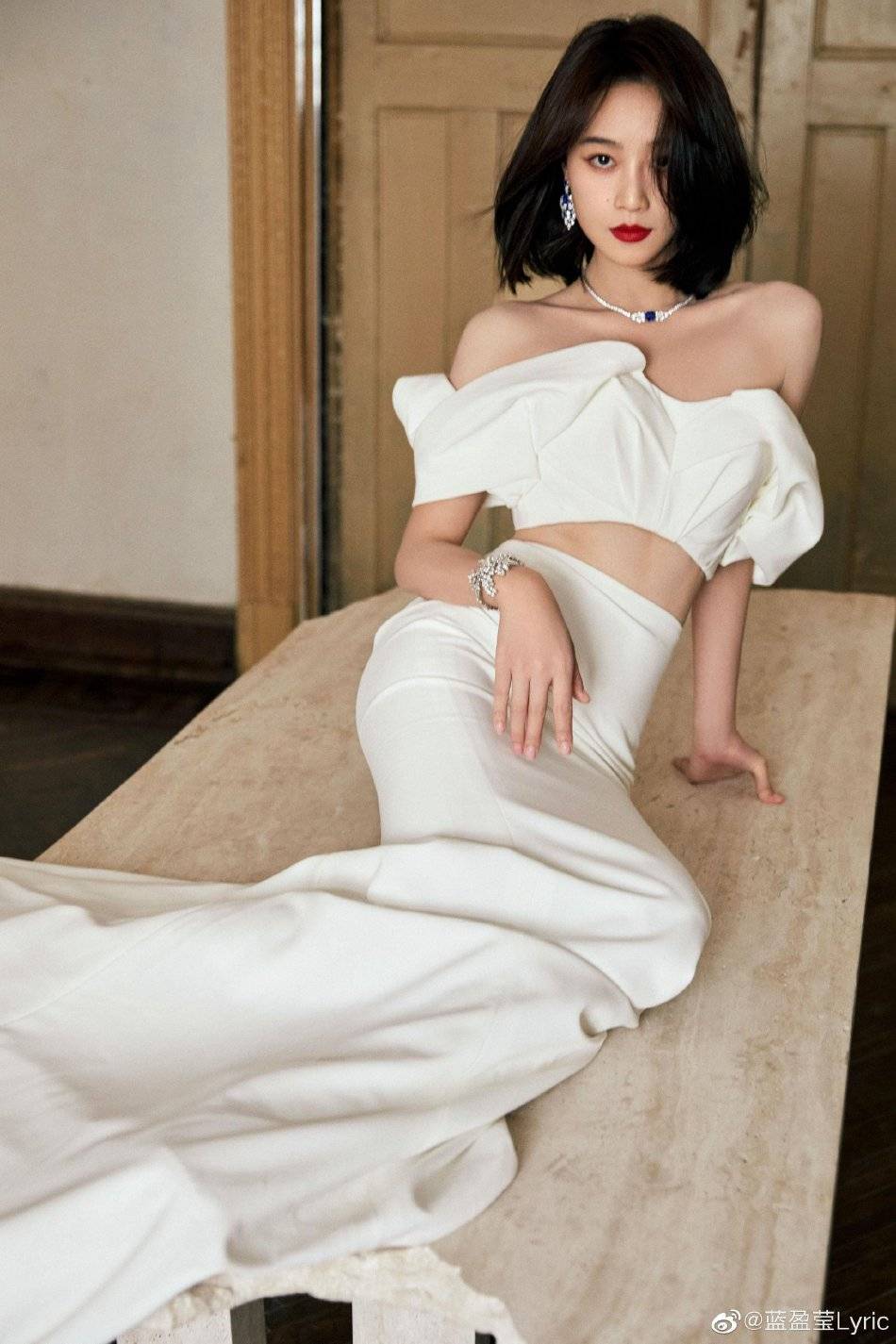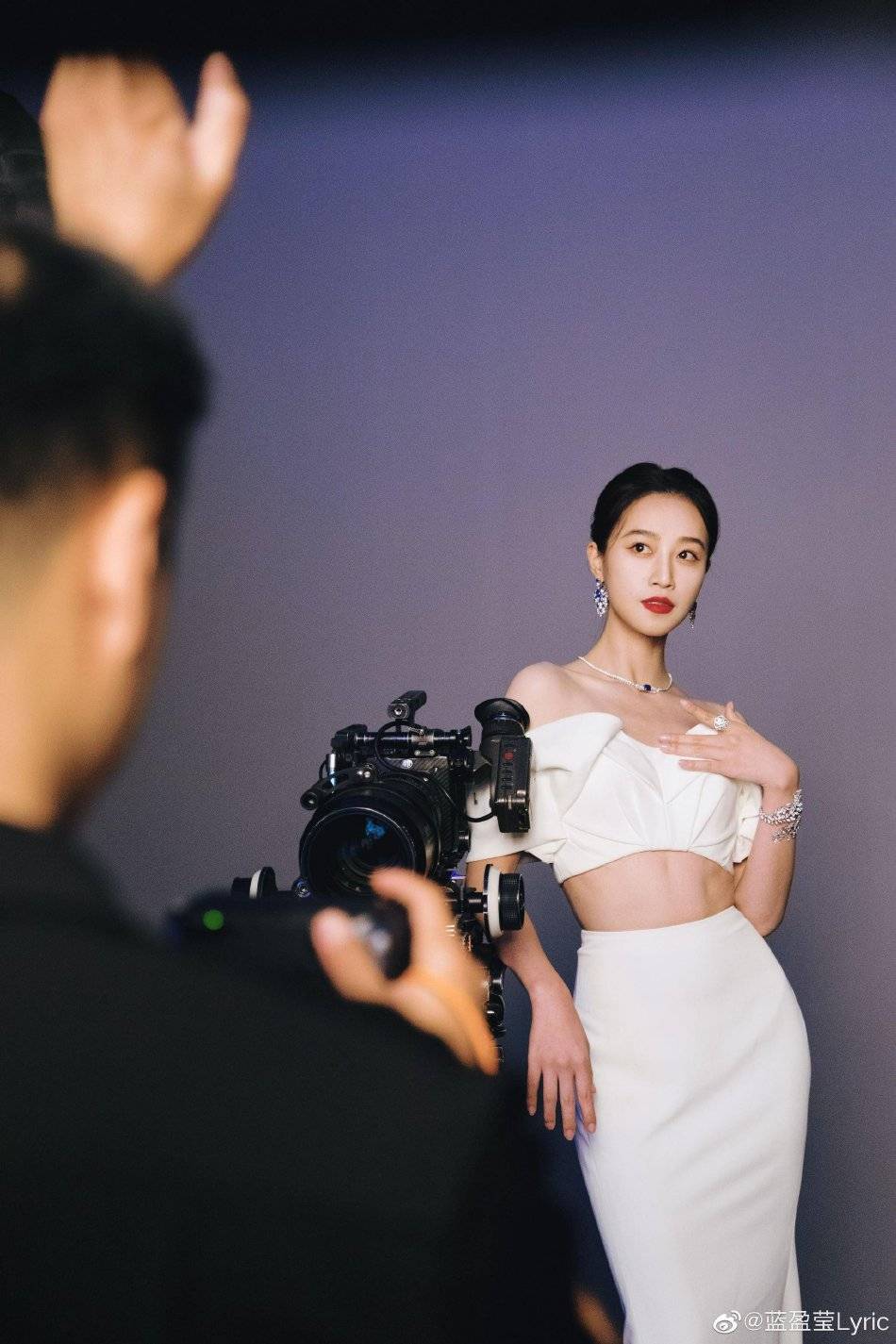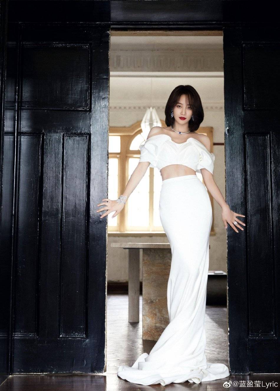 藍(lán)盈瑩穿白色露腰長裙,她俏臉成熟嫵媚,脖子和手上都戴著名貴首飾,加上她肌膚白到發(fā)光,真是太美了!