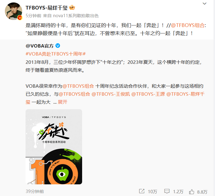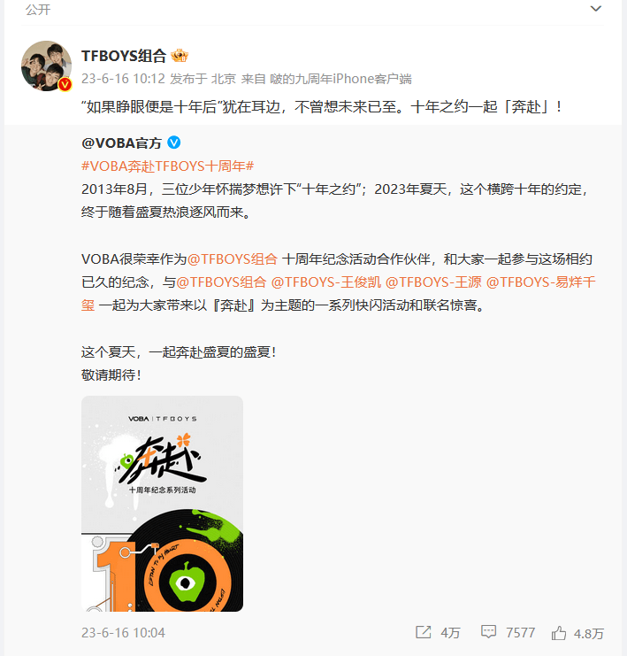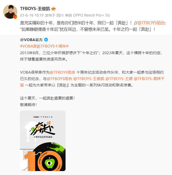 TFBOYS十年之約活動官宣 王俊凱王源易烊千璽發(fā)文