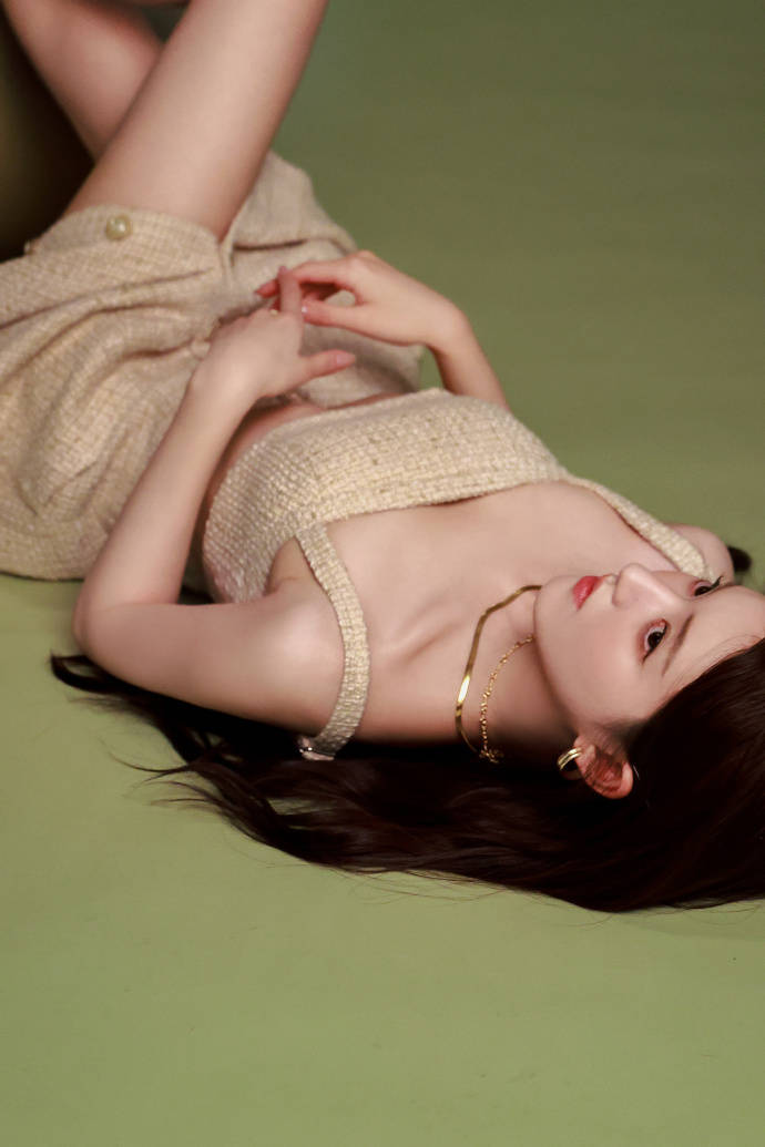 趙露思身穿黃色吊帶衣裙,躺在綠色地毯上,露出白皙的香肩和大長(zhǎng)腿,絕對(duì)性感撩人!