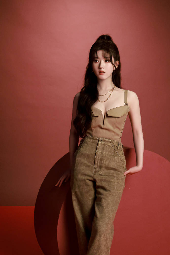 趙露思身穿棕色吊帶衣裳,搭配棕色緊身褲,她俏臉清麗脫俗,特意露出自己乳溝,真是為了性感真拼命擠出事業(yè)線??!