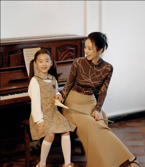 董璇陪小酒窩彈琴,母女兩人感情好。