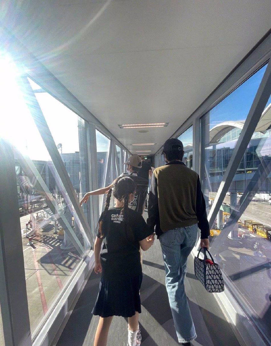7月18日,孫儷(明星經(jīng)紀(jì)公司)曬帶等等小花出國游玩照,母子三人牽手?jǐn)埣缧腋i_心。