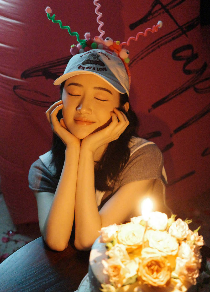 景甜曬35歲慶生照片 對(duì)蠟燭許愿溫柔甜美