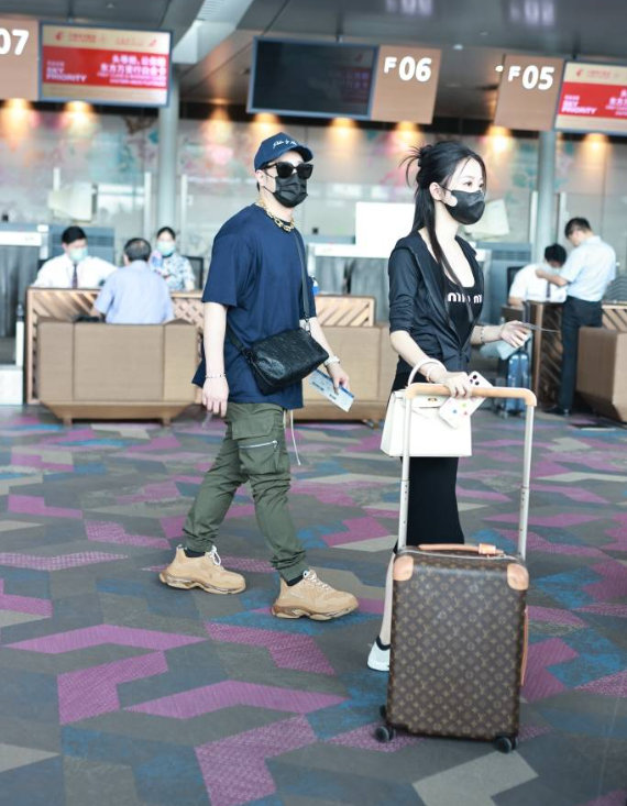 潘瑋柏夫婦現(xiàn)身機場 妻子推行李男方只顧耍帥