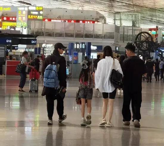 戚薇和李承鉉帶女兒出行被偶遇 Lucky穿牛仔短褲超有范