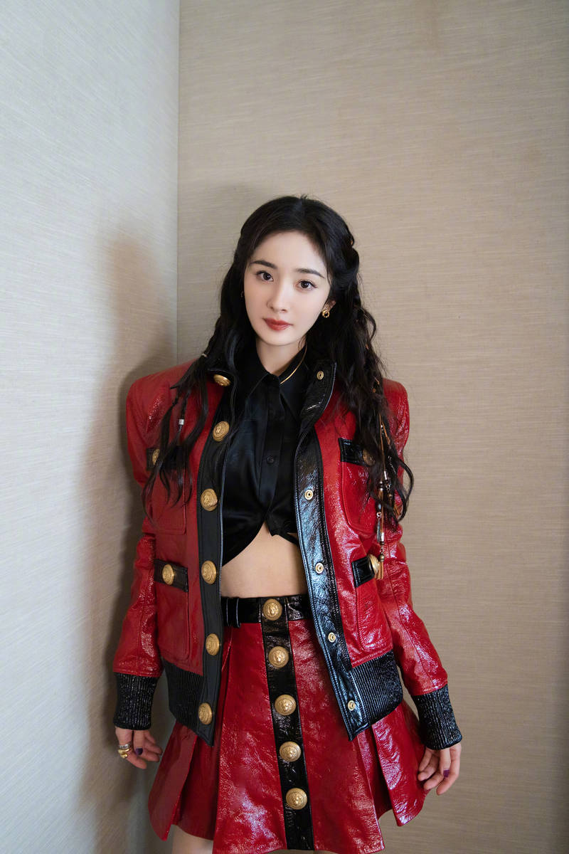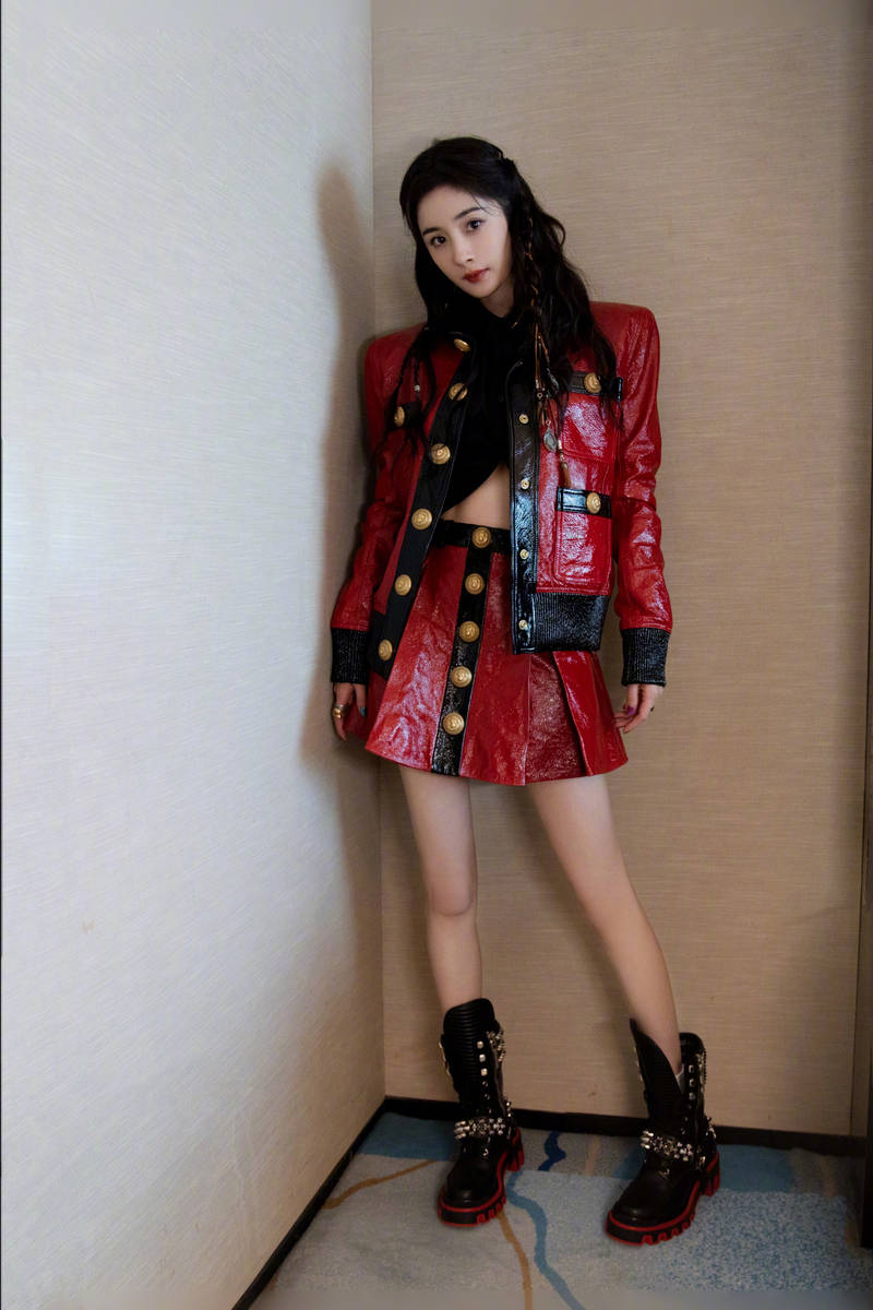 楊冪穿紅裙套裝凌厲颯爽 垂眸淺笑甜美可愛