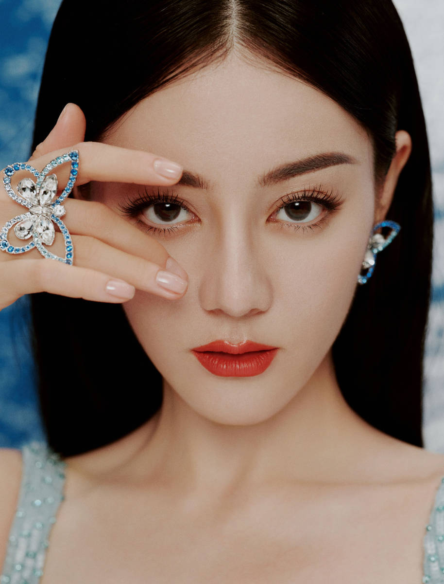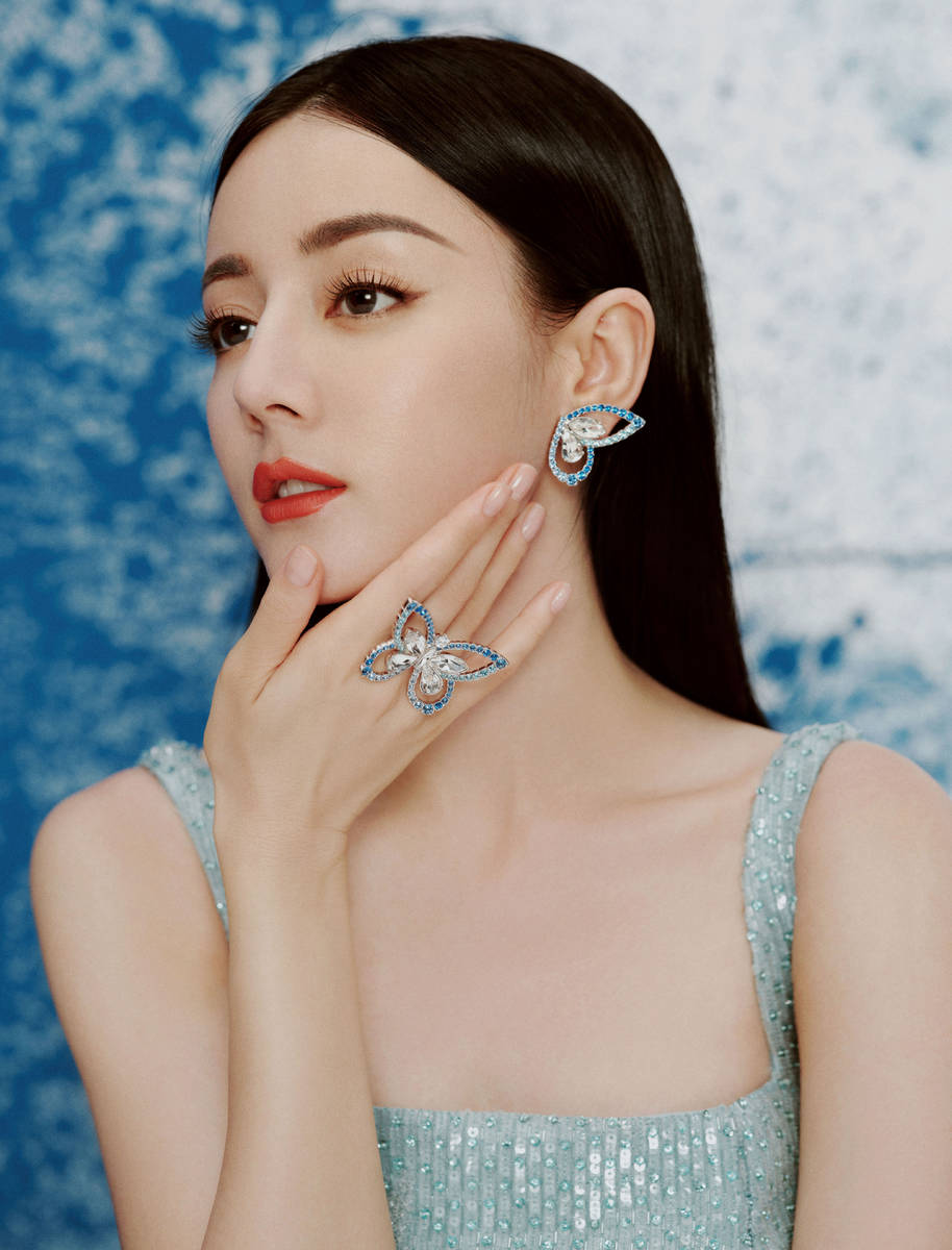 迪麗熱巴戴蝴蝶系列珠寶配飾超時髦。