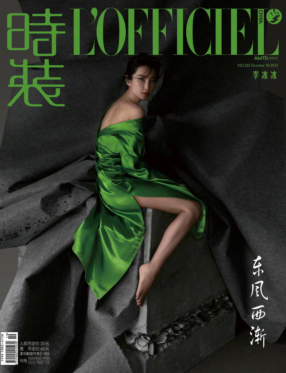 9月27日,李冰冰寫真釋出,綠色絲緞長裙,面紗掩面拂動,多種風格駕輕就熟,嫵媚似青蛇。