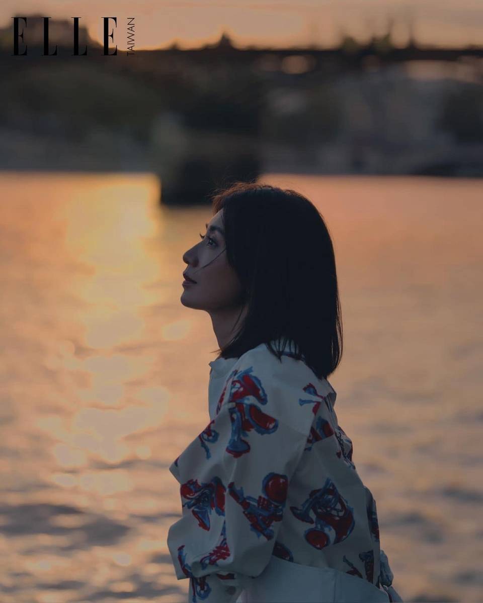 賈靜雯側(cè)顏精致,整個(gè)人仿佛散發(fā)著柔光。