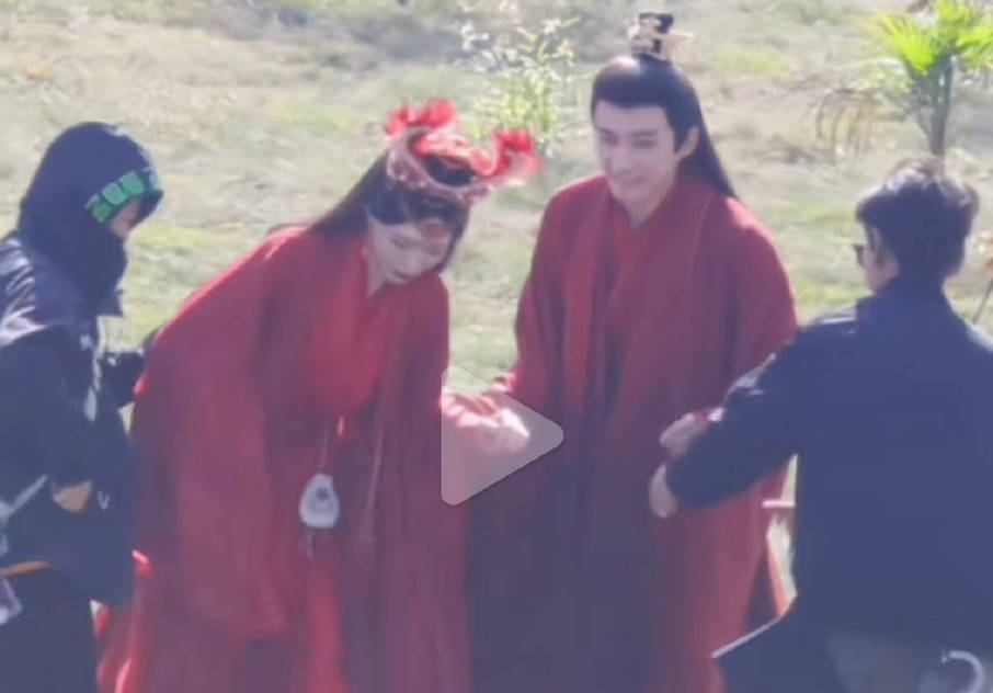 唐嫣新劇大紅婚服路透曝光 明艷嬌嫩肌膚白皙水靈