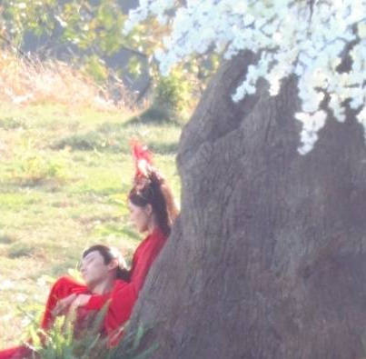 唐嫣抱著劉學(xué)義靠在大樹(shù)上。