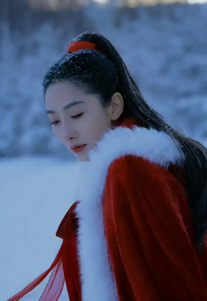 陶昕然劍眉紅唇,睫毛、頭發(fā)上落雪,仙俠氣質(zhì)盡顯。