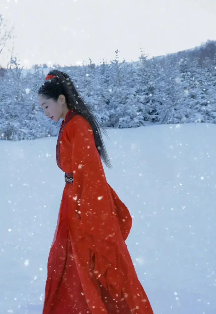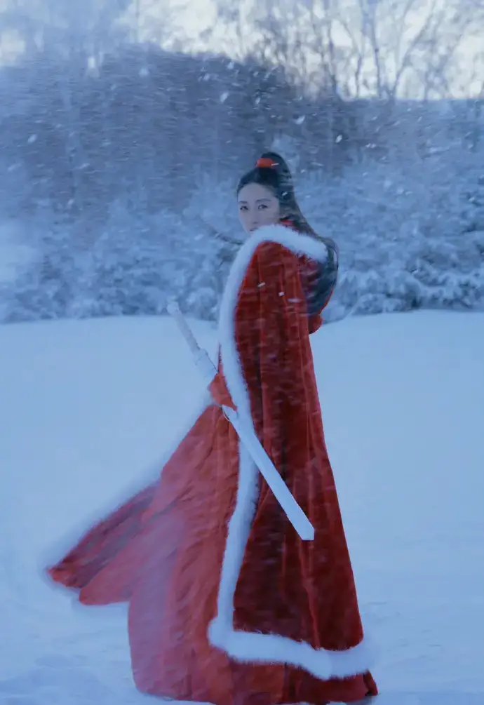陶昕然雪地黑發(fā)紅衣古裝照 手持佩劍女俠氣質(zhì)滿(mǎn)滿(mǎn)